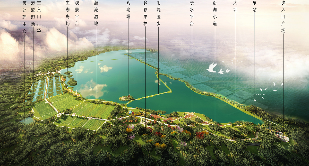 3、水生態(tài)工程:潛流濕地工程6h平方米;表流濕地人工濕地7.9 h平方米;綠化種植25.28h平方米,配套服務(wù)建筑共計(jì)1132.46平方米;修建環(huán)湖路10.932千米,次支園路6.580千米;場(chǎng)地鋪裝共計(jì)23127平方米;生態(tài)浮島、太陽(yáng)能等原位處理工程;